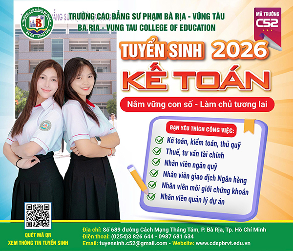 - Chuyển khoản qua tài khoản của Trường Cao đẳng Sư phạm Bà Rịa - Vũng Tàu, số 7610461552 tại Ngân hàng TMCP Đầu tư và Phát triển Việt Nam (BIDV) chi nhánh Bà Rịa.