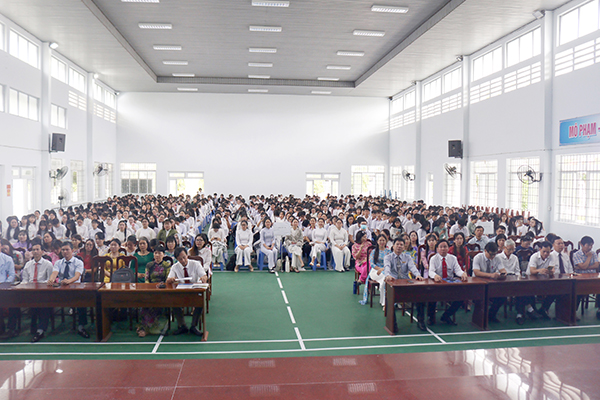 Tại buổi Lễ, thầy Phan Thế Hải – Quyền Hiệu trưởng nhà trường đã phát biểu chào mừng và căn dặn sinh viên thực hiện tôn chỉ “Mô phạm, Sáng tạo, Hội nhập” của nhà trường để tích cực học tập và rèn luyện đạt thành tích cao nhất trong năm học mới 2025 – 2026.