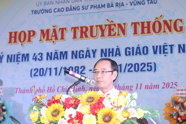 Phát biểu tại buổi Họp mặt, thầy Phan Thế Hải, gửi lời chúc mừng đến các thế hệ nhà giáo, lời cảm ơn đến lãnh đạo Thành phố, lãnh đạo sở, ban, ngành, các địa phương, các đơn vị, doanh nghiệp trong và ngoài tỉnh đã gửi thiệp, hoa, quà chúc mừng và đến dự buổi họp mặt. Thầy khẳng định trong quá trình xây dựng và phát triển, các thế hệ thầy, cô giáo, viên chức, người lao động và sinh viên nhà trường luôn phấn đấu không mệt mỏi vì sự nghiệp chung.