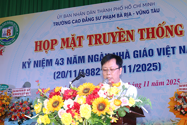 Tại buổi Họp mặt, Thầy Nguyễn Việt Hùng, Chủ tịch Công đoàn trường đã ôn lại truyền thống 43 năm Ngày Nhà giáo Việt Nam, gửi lời tri ân những đóng góp của đội ngũ nhà giáo đối với sự nghiệp giáo dục và đào tạo nói chung, sự phát triển của nhà trường nói riêng.