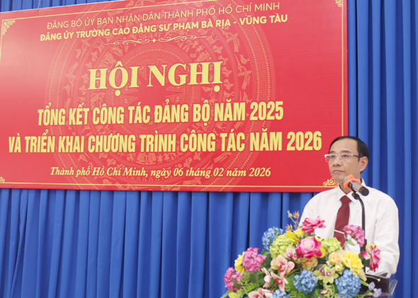 Đ/c Phan Thế Hải - UVTV Đảng ủy, Q.Hiệu trưởng trình bày Báo cáo Tổng kết công tác Đảng bộ năm 2025