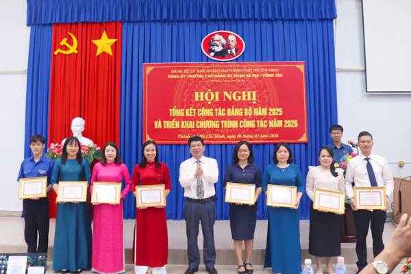 Tại Hội nghị, Đảng ủy Trường đã tổ chức trao Giấy khen cho các tập thể, cá nhân đạt thành tích xuất sắc trong công tác năm 2025, gồm: Chi bộ khoa Giáo dục Mầm Non đạt thành tích “Hoàn thành xuất sắc nhiệm vụ tiêu biểu”; 12 đảng viên về thành tích “Hoàn thành xuất sắc nhiệm vụ”;08 đảng viên về thành tích trong học tập và làm theo tư tưởng, đạo đức, phong cách Hồ Chí Minh chuyên đề năm 2025.